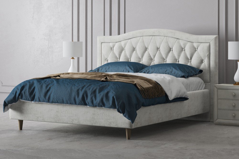 Интерьерная кровать с каретной стяжкой на ножках - это элегантный элемент интерьера, который сочетает в себе стиль и комфорт.
