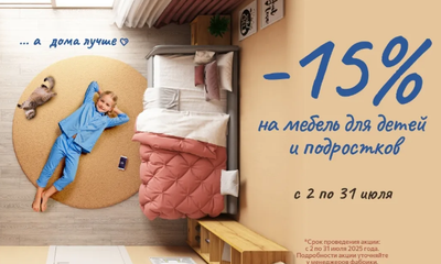-15% на всю корпусную мебель, мягкие кровати, текстиль и аксессуары от чека 100 000 руб**.