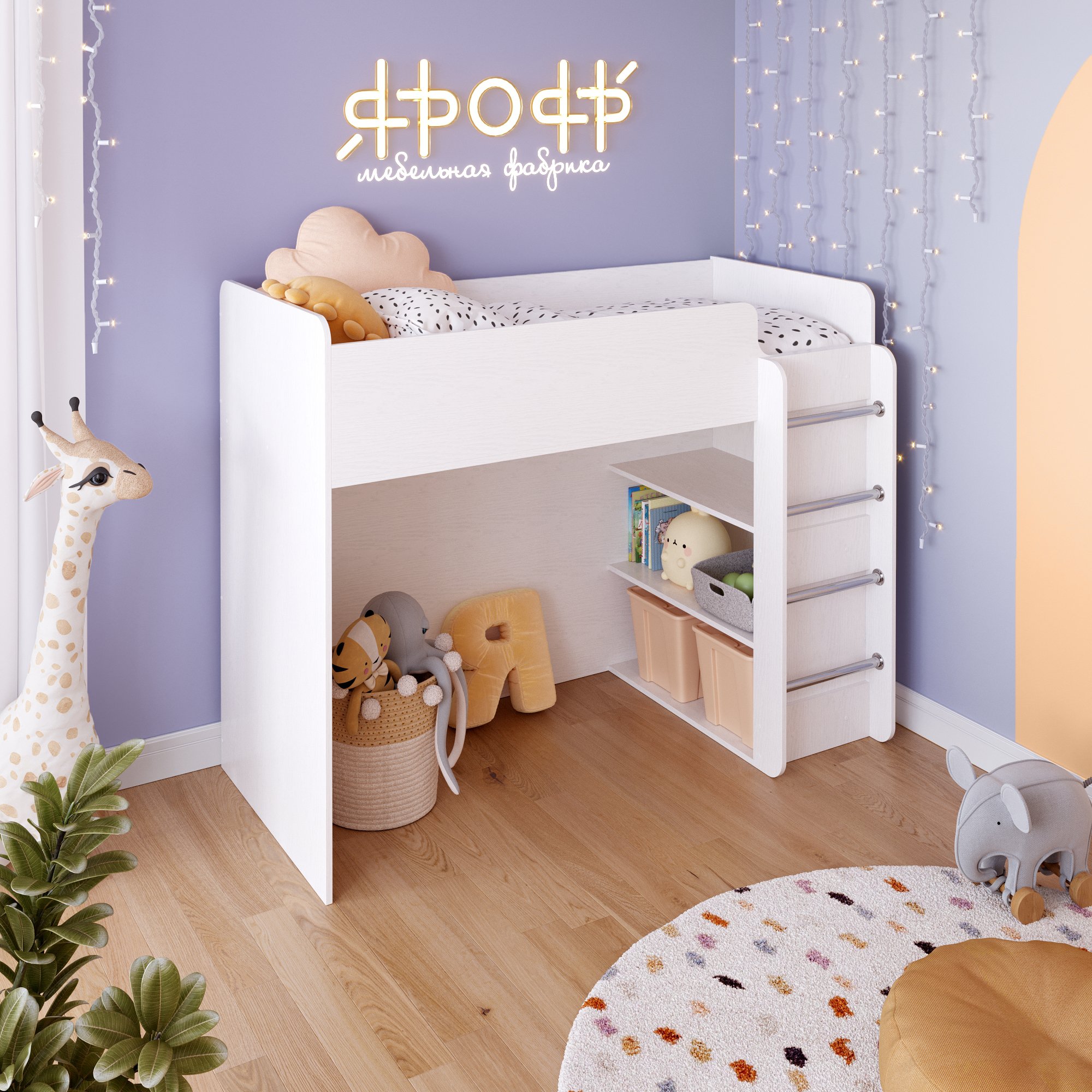 Кровать-чердак «Малыш 5» – это не просто мебель, а универсальное решение для небольшой детской комнаты. Она объединяет место для сна, учебы и хранения вещей, экономит пространство и добавляет в интерьер яркий акцент. фасад: Белое дерево, каркас: Белое дерево.