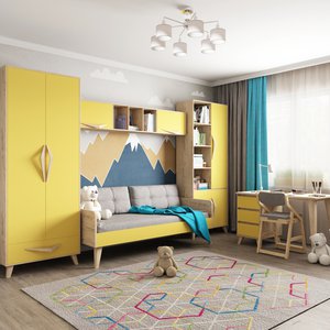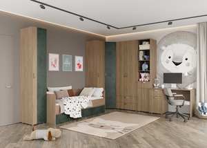 • Модули высотой 2300 мм позволяют максимально использовать пространство, дают возможность оформить комнату «на вырост».<br />