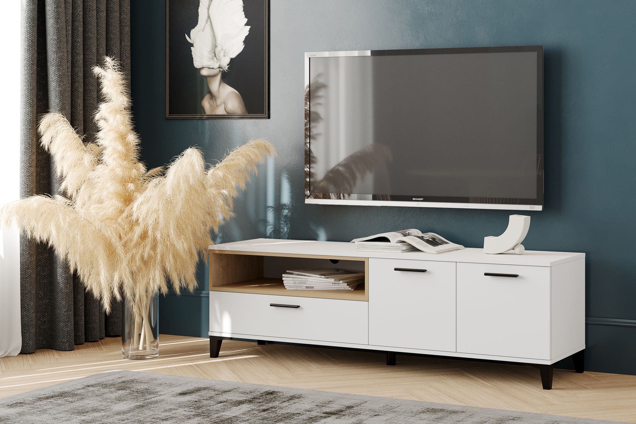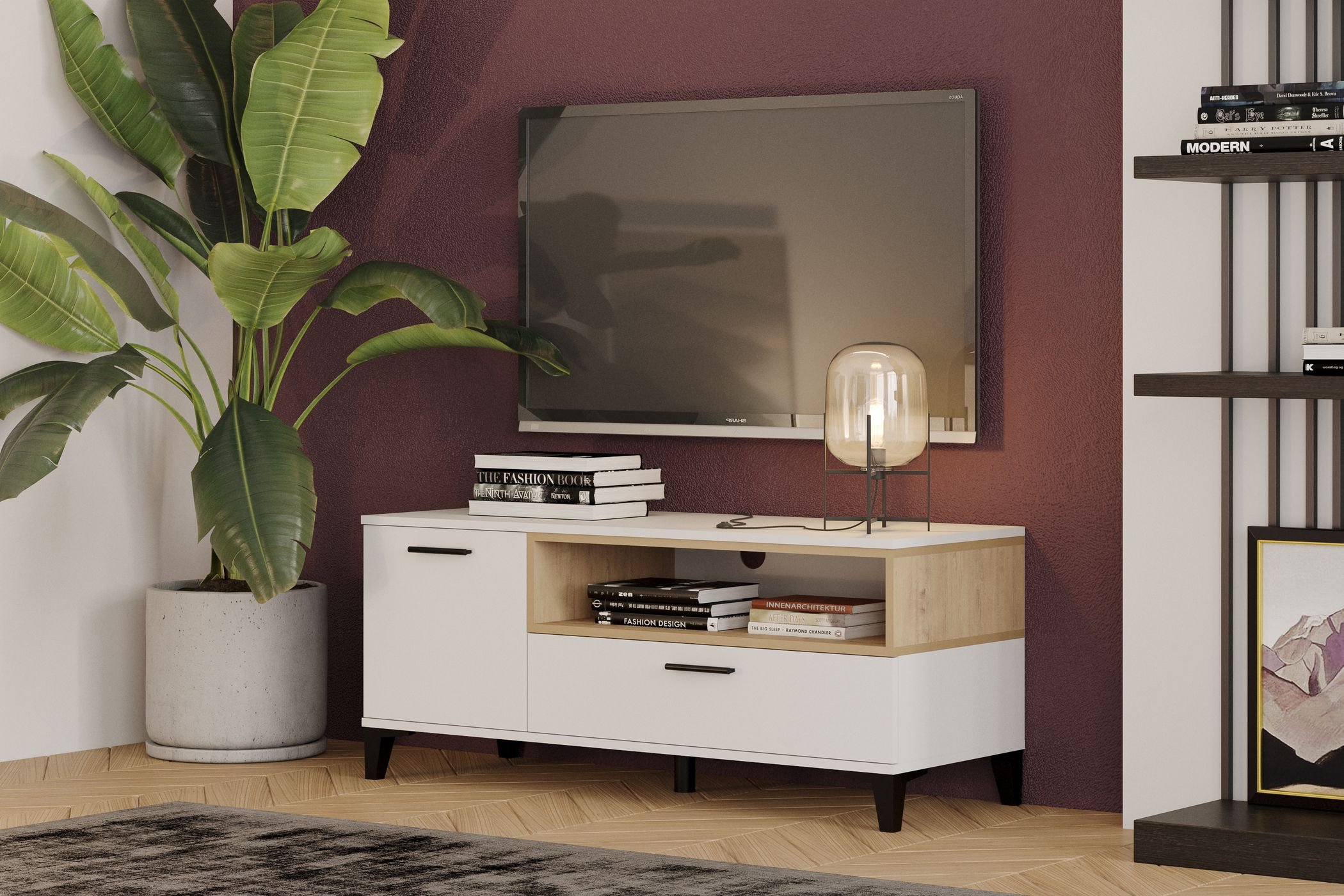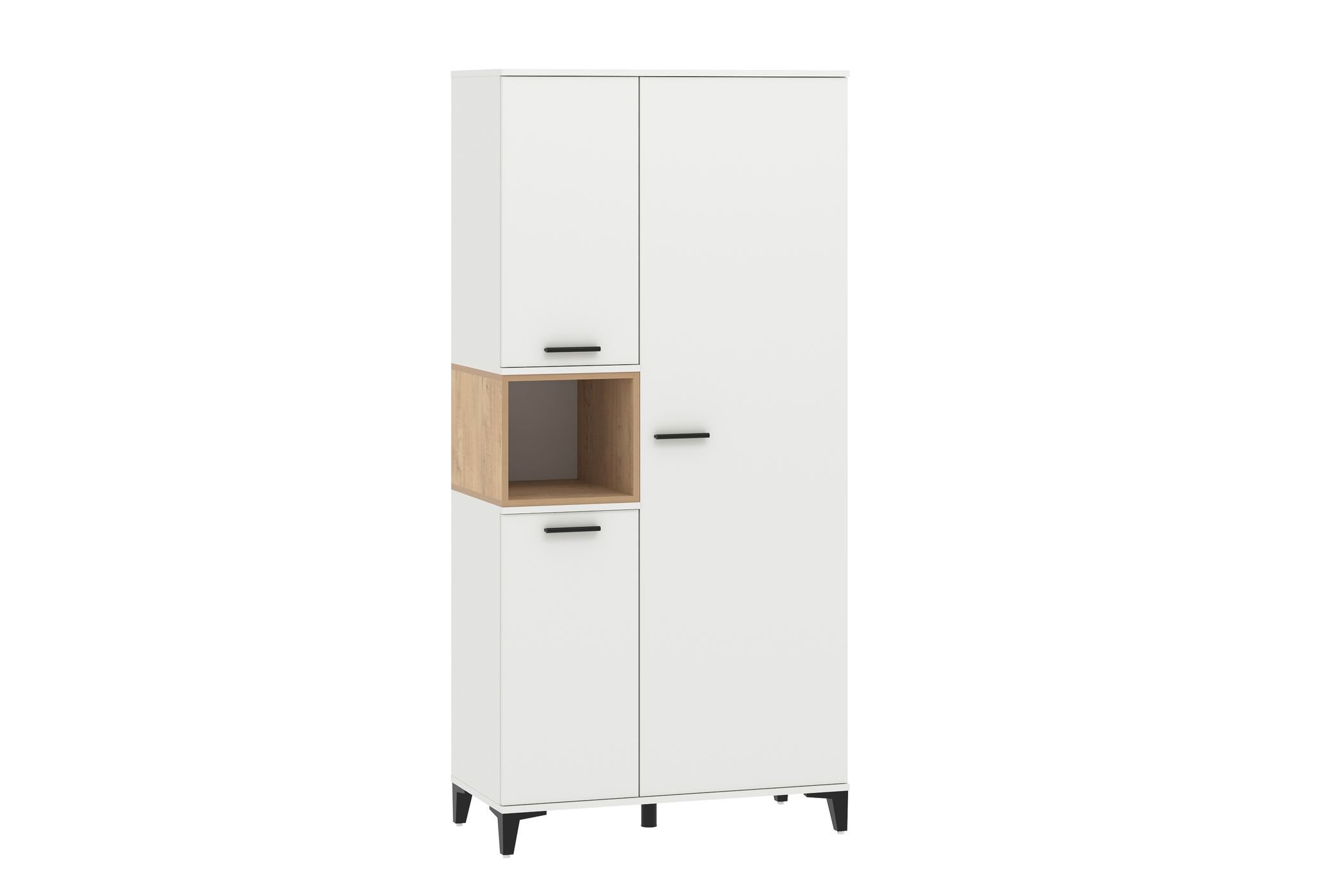 Современная модульная система для гостиной. Сочетание цвета Белый, Дуб Бунратти.