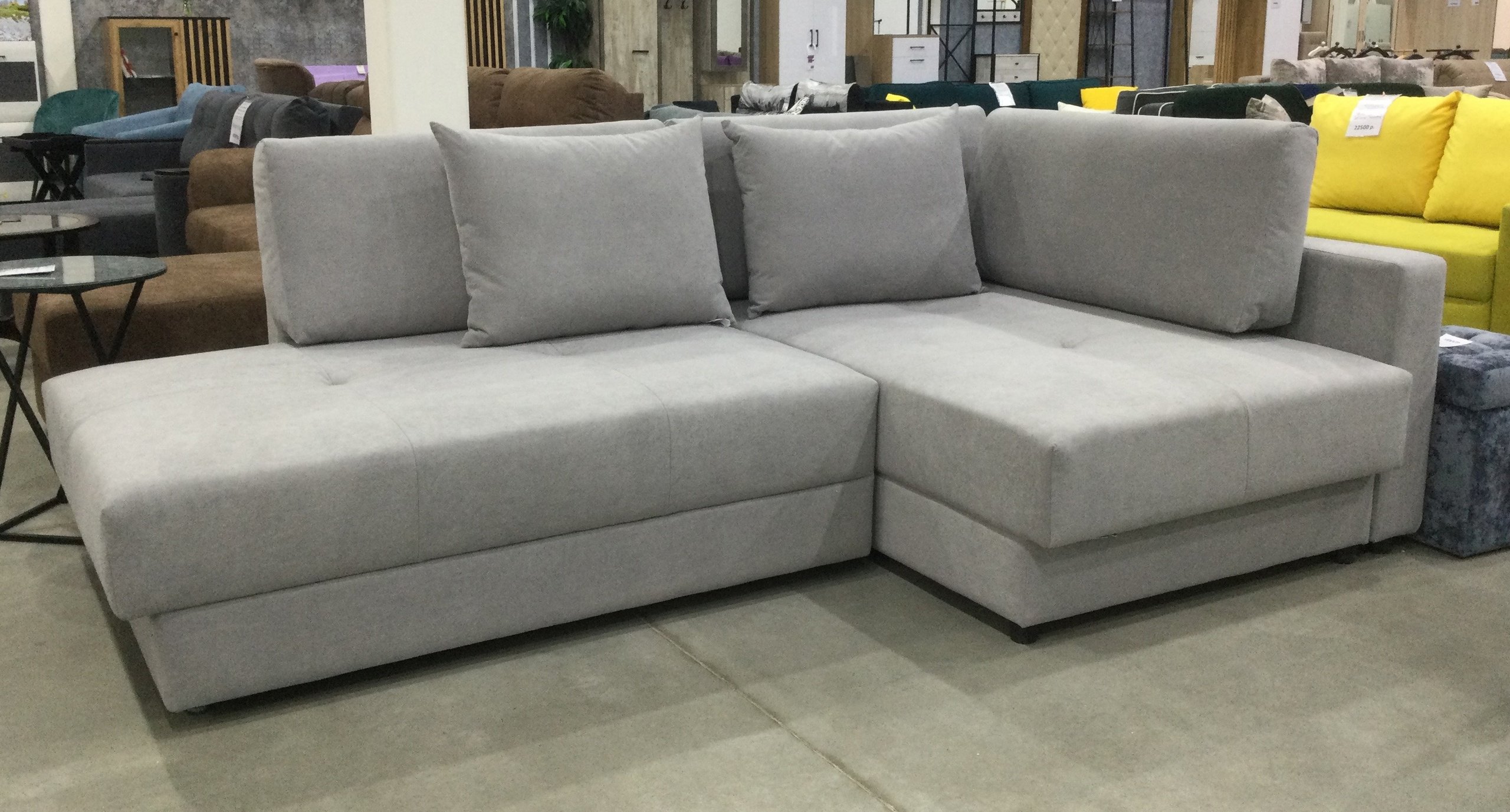 Шикарный диван для домашнего отдыха и большой компании. Идеальное решения для различных стилей: скандинавский, минимализм, лофт, современный. Наличие подспинных подушек обеспечивает поистине комфортный отдых, с их помощью можно регулировать глубину посадочного места. Полный угол позволит полностью заполнить свободное пространство и максимально его использовать. Главной отличительной особенностью является длина матрасов. Она одинаковая. По принципу работы диван напоминает ножницы. Удобство использования дивана заключается в поворотном механизме трансформации. Диван очень просто раскладывается и принимает исходное положение, выкатной механизм не требует значительных усилий при трансформации. Для создания спального места необходимо повернуть сиденье на 90 градусов и зафиксировать его крючком, находящимся под козырьком сиденья.
